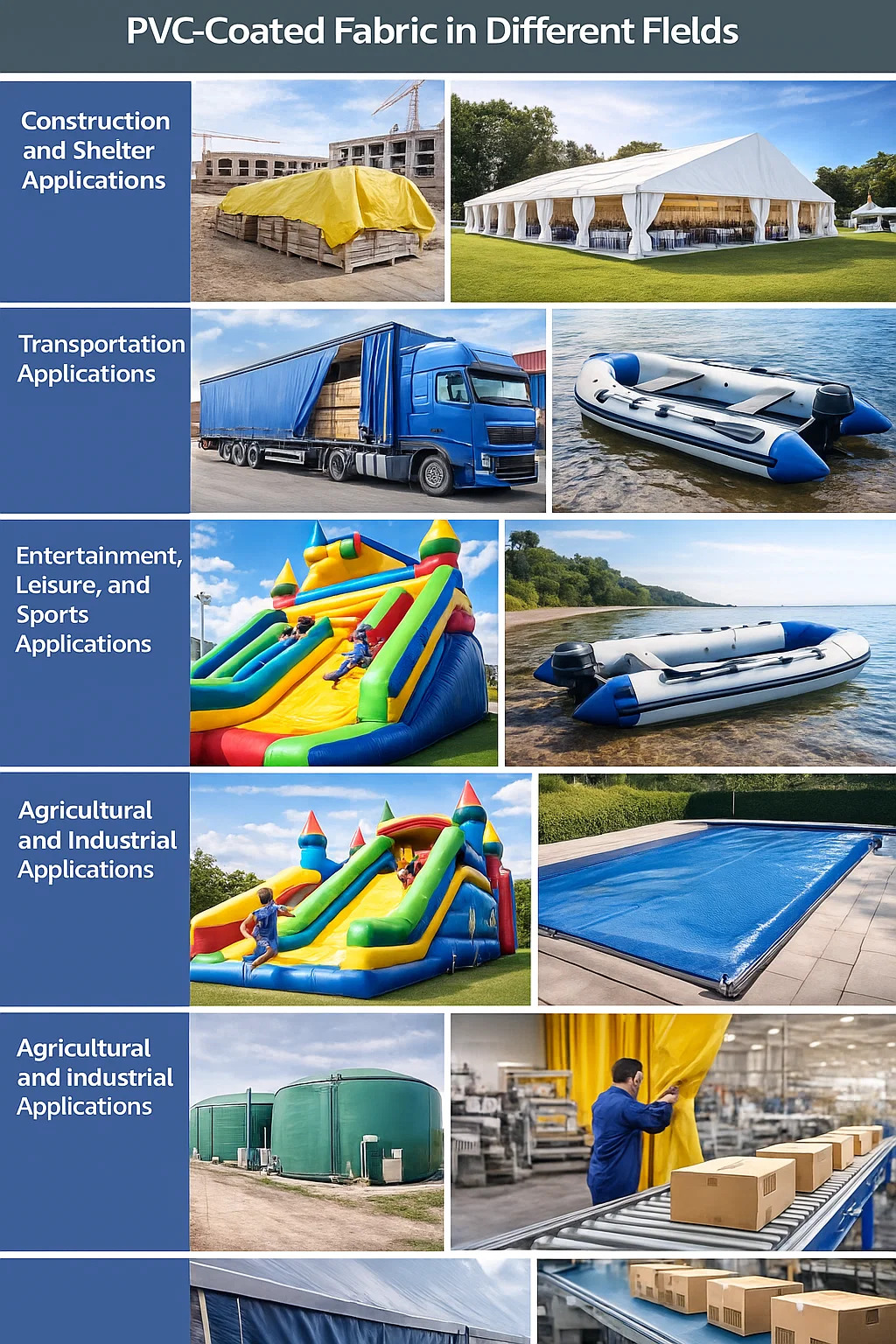 PVC kaplı kumaşın farklı alanlardaki ana kullanımlarından bazıları şunlardır: