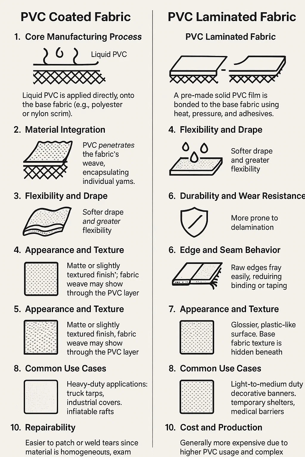 İşte aradaki fark PVC kaplı kumaş ve PVC lamine kumaş nokta nokta anlatılıyor: